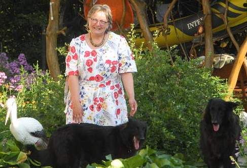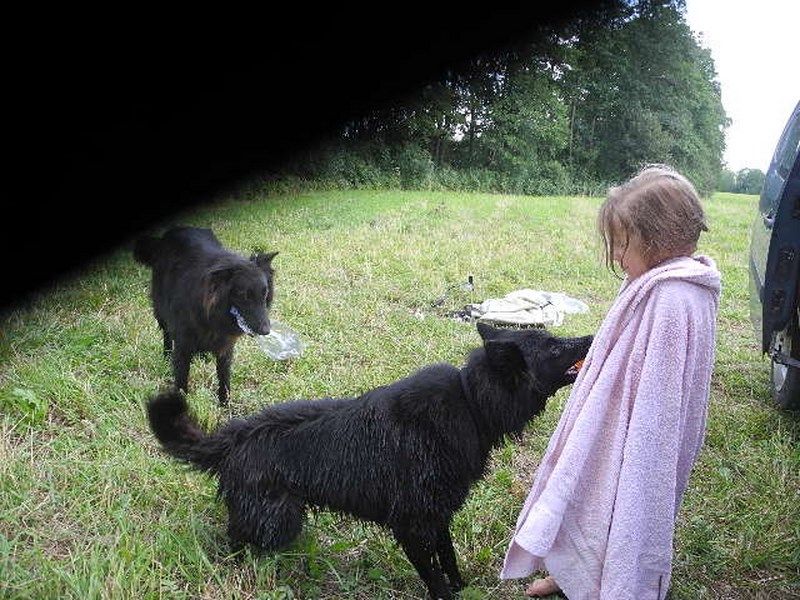 Moi, NOELLE MARIE-THERESE OBCARSKAS et mes chiens FEE NOIRE et FAUCON 30 juillet 2014 en LITUANIE en robe de lin coquelicots et ambre vert, températures ces derniers jours les plus chauds depuis 50 ans 32 celcius à l'ombre et 38 celcius sous soleil direct. Réchauffement climat hein ! meme les abeilles ont besoin d'ombre, car les grosses chaleurs ralentissent le travail et fait du mal au corps ! il faut pas laisser les chiens dans la voiture meme 5 minutes pour éviter dommages aux organes ! et assurer qu'ils ont toujours endroit a l'ombre et de l'eau accessible ! 4 chiens sont officiellement morts de la chaleur au Championnat de France en 2014 je lis dans Revue Chiens. Il ne faut pas etre négligeant envers nos chiens. Ceux qui ne meurent pas souffrent terriblement dans ces circonstances. Je ne vais pas en expo si un de mes chiens doit rester dans la voiture dans températures comme ça non. Le 4 octobre en France il faisait 30 celcius encore à Toulouse !