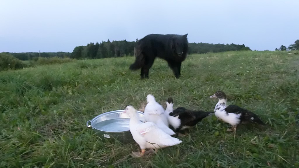 OU SONT NOUS ? JUIN 2014 ? CHEZ NOUS ! SUR NOS TERRES ! TROUPEAU CANARDS ! ! que ça soit canards, chevres ou autre, un bon chien de berger est CALME pas AGGRESSIF.